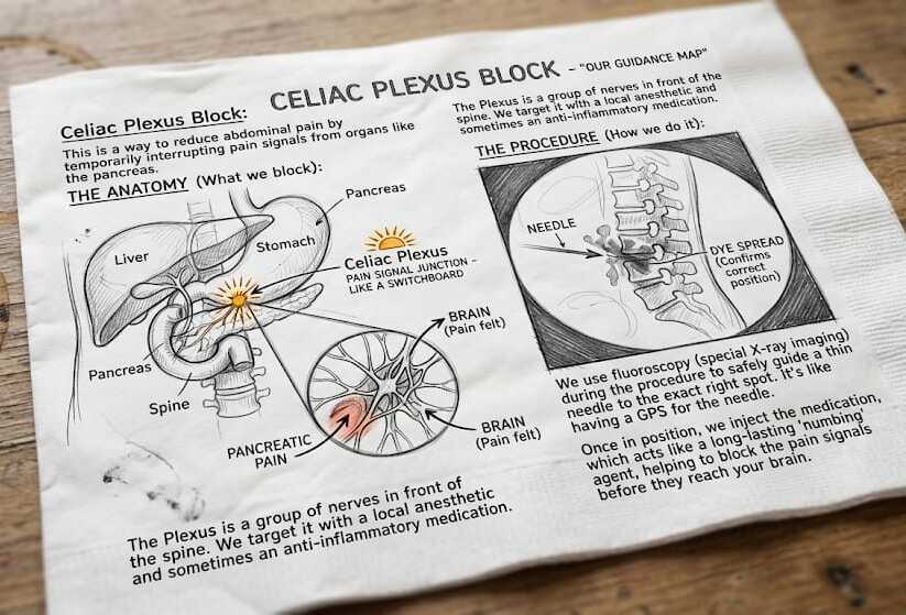 A celiac plexus block is a procedure where a doctor injects medication around this nerve switchboard to “turn off” or “turn down” the pain signals. It’s like flipping a circuit breaker to stop the flow of electricity.