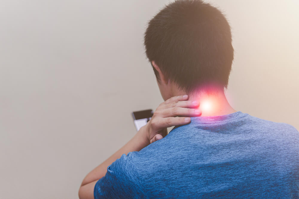 It refers to the strain and pain felt in the neck and upper back. That occurs from prolonged forward head posture. This is often caused by looking down at digital devices. Like for instance, tablets, phones, etc.